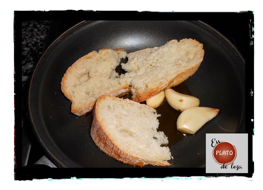 En una sartén aparte echamos un poco de aceite y sofreímos las rebanadas de pan junto con tres ajos, Cuando estén dorados los sacamos y hacemos un majado con el comino, el pan, los tres dientes de ajo, sal y un poco de vinagre (al gusto pero con cuidado que ya digo que igual de malo es pasarse que no llegar). Una vez que tengamos la mezcla bien majada la diluimos en un poco de caldo de cocer las espinacas y reservamos.