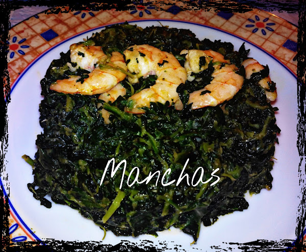 Añadir los langostinos limpios y rehogar, picar las espinacas y echarlas en la sartén.