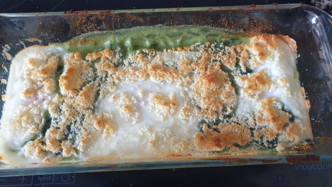 Gratinamos durante unos minutos para que cuajen los huevos y la superficie quede dorada.