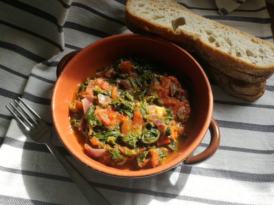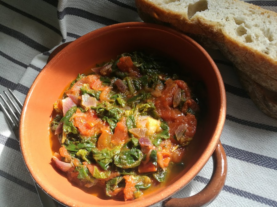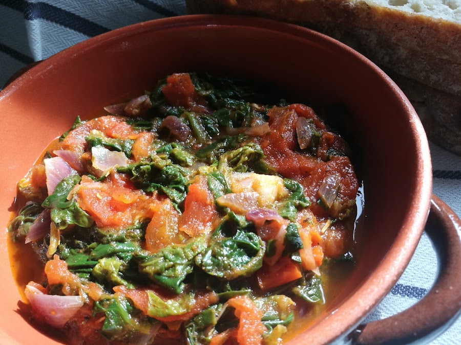 - Incorporamos las espinacas, las hierbas y dejamos rehogando 3 minutos más.