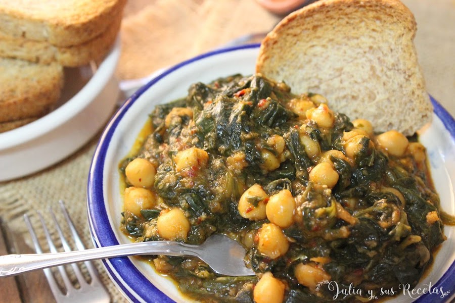 Las espinacas esparragadas con garbanzos son un plato muy típico de la zona serrana de Jaén, aunque se hacen en todas las provincias de Andalucía. En Sevilla es una de las tapas más famosas, aunque la receta que os traigo hoy es la que hace mi suegra y que le quedan riquísimas.