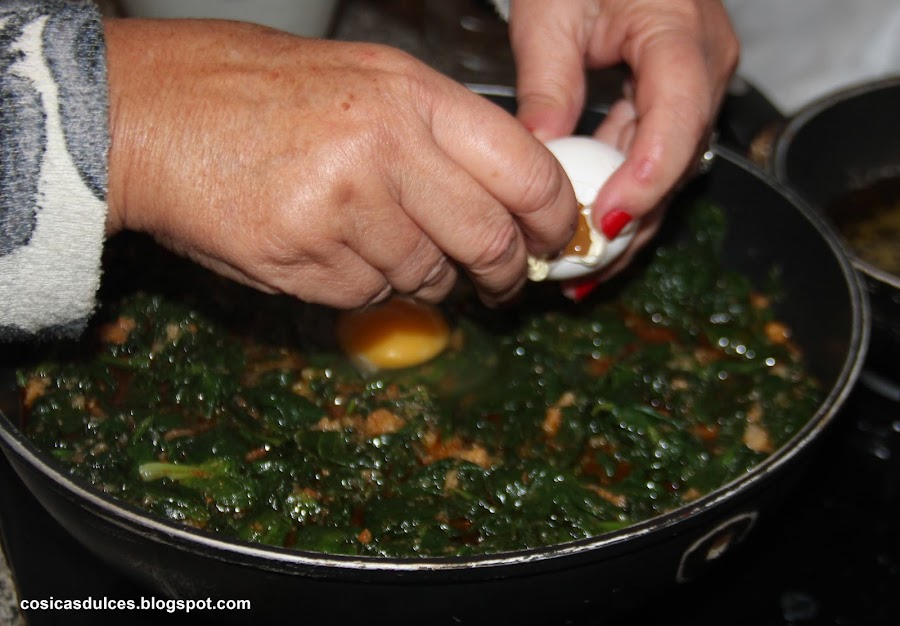 Cocinamos durante un par de minutos y por ultimo añadimos los huevos.