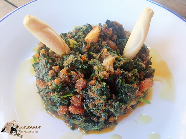 En un mortero, machacar los ajos y el pan (reservar 3 ajos)
