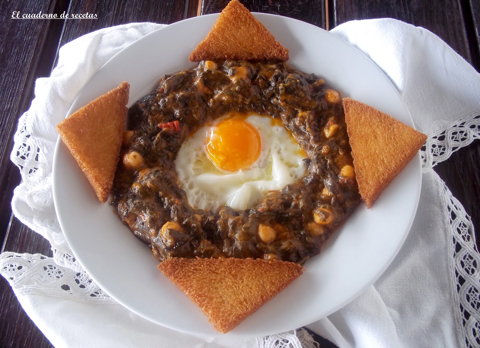 En " El cuaderno de recetas" os vais a encontrar una Espinacas guisadas con garbanzos