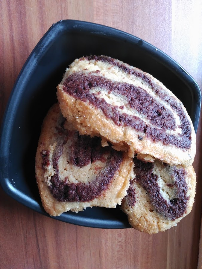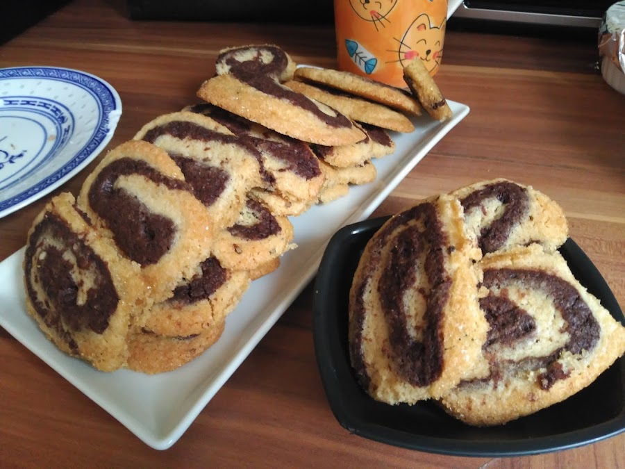 - Con la ayuda de papel film, enrollamos la masa, formando un cilindro, lo rebozamos en azúcar moreno y lo metemos en el congelador 15 minutos.