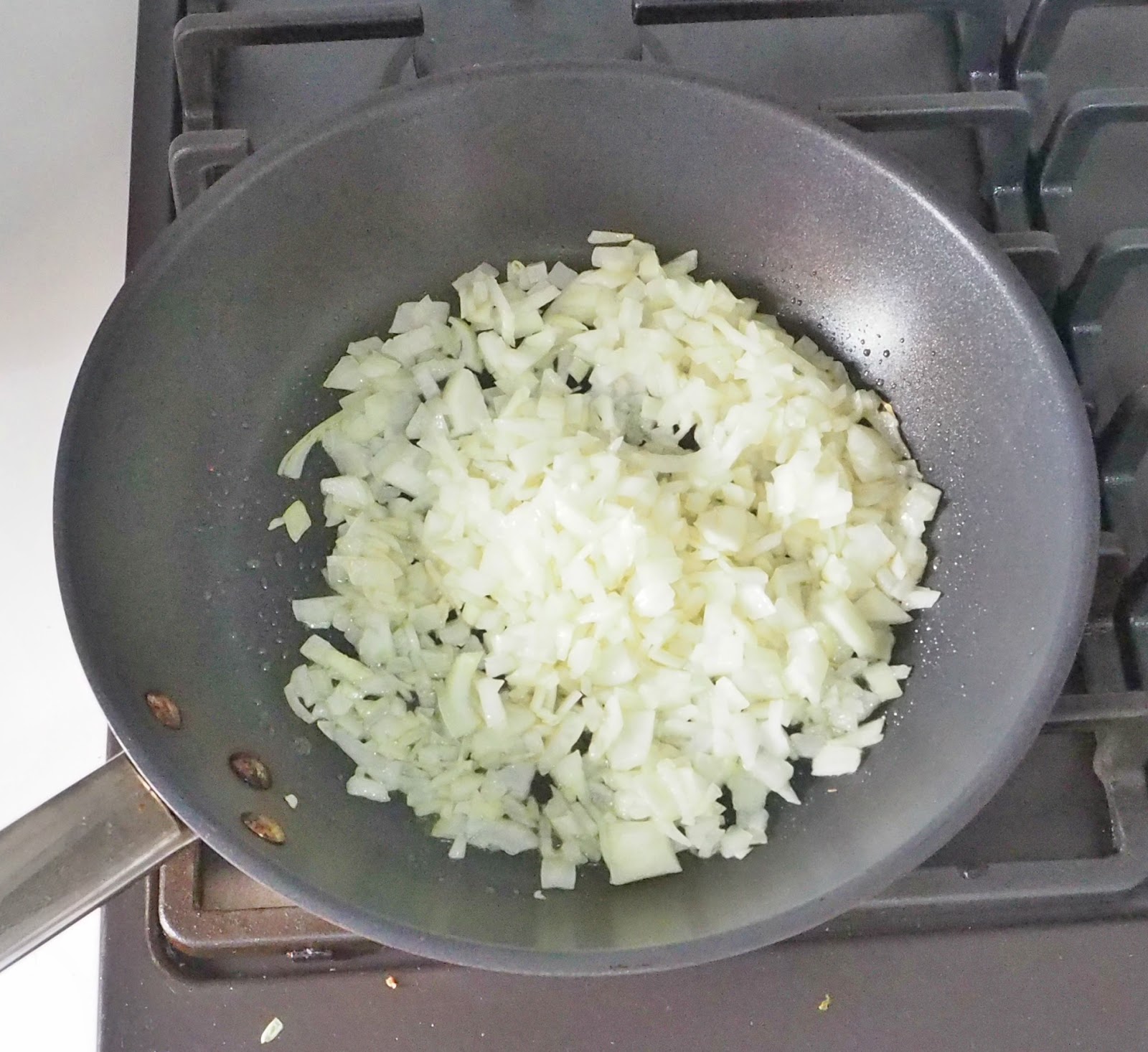 - En una sartén con un poco de aceite caliente, ponemos a dorar la cebolla bien picada.