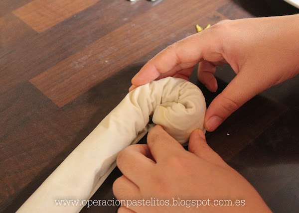 4. Ahora enrollamos para formar una espiral muy suavemente: