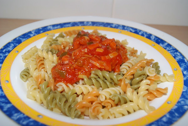 Servimos en un plato la pasta recién hecha con la salsa caliente. ¡Los niños lo van a devorar, seguro!