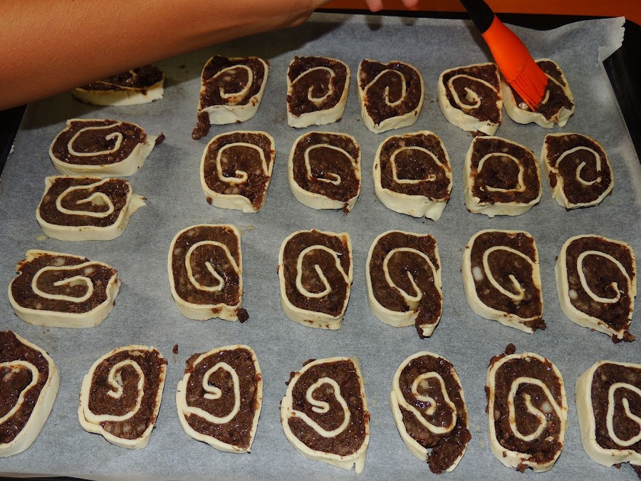 Se ponen en una bandeja de horno y se pintan con huevo batido.