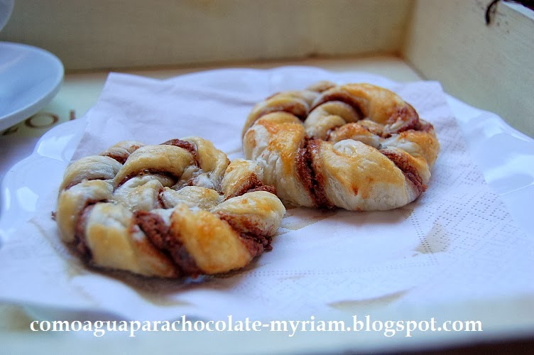 Ahora os dejo una de las cosas que les puse en la merienda y que a mí me encantó ya que lleva hojaldre y chocolate ummmm.