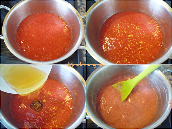 Añade la ralladura de limón y la miel, mezcla y deja que se cueza a fuego lento removiendo continuamente.