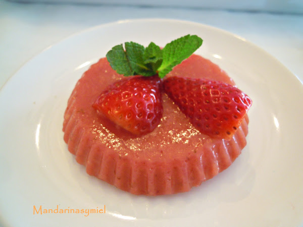 Pasadas unas 4 horas, desmolda y decora con unas láminas de fresas y unas hojas de menta.