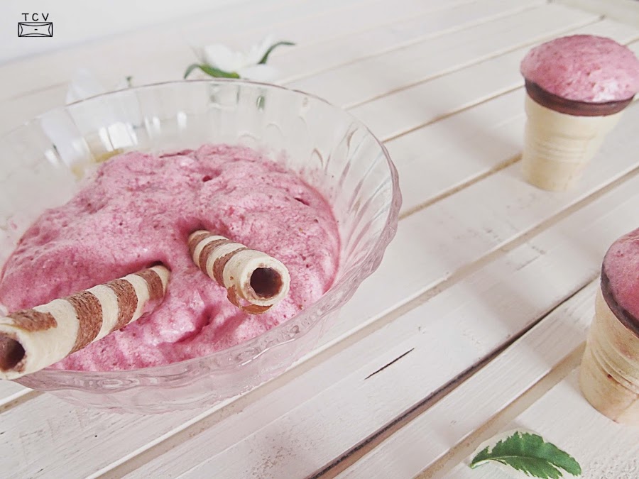 Y es que a veces puede pasar que una hace una receta y queda salada como salmuera y con unas fotos monisísimas queda solucionado y otras en las que una hace un plato que queda exquisito y no hay manera de presentarlo. Siendo así lo mejor es reinventarlo, como es el caso de la receta de hoy, que nació con intención de ser un helado y se ha convertido en lo que os traigo. Hace poco compré la súper heladera del Lidl, así como el primer experimento salió perfecto el segundo no, ya que la mezcla ha quedado demasiado líquida. Yo no desisto, el siguiente estoy segura que no va a tener nada que envidiar al mejor gelatto italiano. Lo que más pena me ha dado ha sido que el primer uso no lo documenté y el fiasco sí.