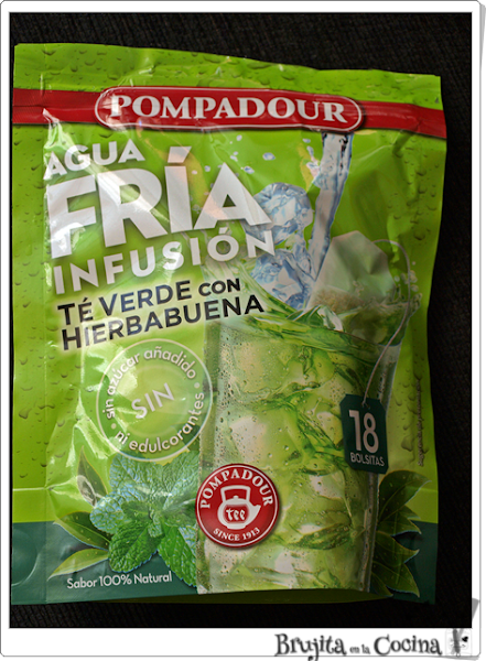 Así que cuando en mi caja de Disfrutabox de este mes, ví un paquete de infusión en frio, sí sí en frio y con hierbabuena, esto tiene que ser muy bueno, además es Pompadur que en cosas de té entiende y me ahorro el paso de infusionar en caliente para luego enfriar.