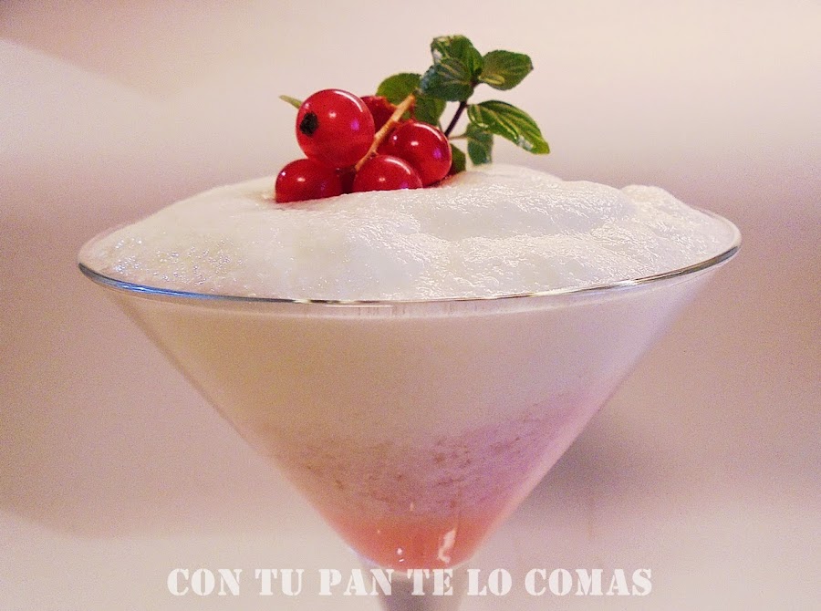 Después de tantos excesos navideños, sobre todo de dulces, apetece un postre ligero para tomarlo sin remordimientos: una espuma (dos en realidad) de yogur y grosellas que además de ligero queda muy chulo en unas bonitas copas.