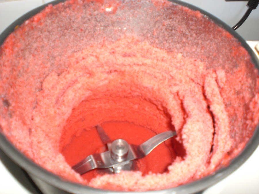 A continuación, incorporar el zumo de limón y la fruta congelada (en mi caso eran fresas), y programar 30 seg/ prog. 5-10