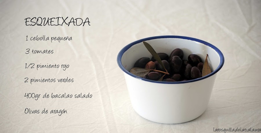 Las olivas negras, a mi parecer le quedan genial las de Aragón. Lo aliñaremos solamente con aceite de oliva virgen extra y sal al gusto.