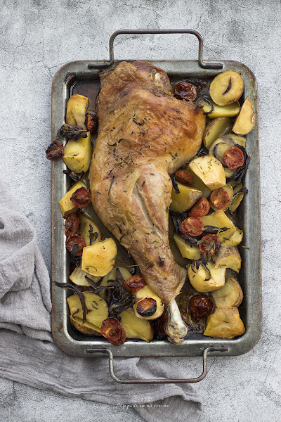 En una semana ya estaremos celebrando el día de Navidad, y en algunas casas no se ha decidido todavía el menú, por lo que desde esta pequeña ventana sigo ofreciendo posibilidades. Y en esta ocasión una alternativa a las familias menos numerosas, en las que un pavo entero es mucha cantidad, nos queda la opción de preparar una o dos piernas de pavo, y así evitamos que nos sobre tanta comida como otros años. La receta es bien sencilla, y el acompañamiento también, apto para todos los públicos, rápido de preparar y además económico, tres premisas que vienen muy bien a la hora de planificar menús.