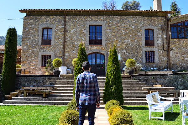El edificio es una masía envuelta en vegetación y en un espacio muy tranquilo en pleno monte. El interior es rústico, con paredes de madera y piedra, techos bajos y columnas de roca en pleno comedor, muy cálido y fresco.
