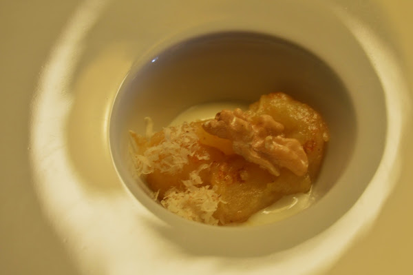 La bechamel de leche fresca de vaca increíble y ligera, el aceite de trufa demasiado potente, le robaba potencia a la brandada que era muy suave.