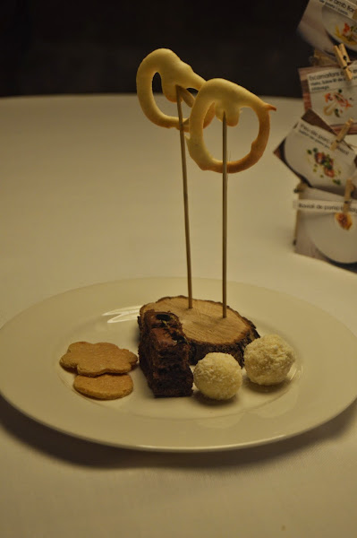 Bastante decepcionantes, muy sencillos, casi cutres... ¿Porqué les pasa esto a tantos restaurantes? Si te curras un menú degustación para impresionar a tus comensales, ¿porqué terminas haciendo naufragar las expectativas con este bocado final? Lo mismo pasaba en Gelonch...