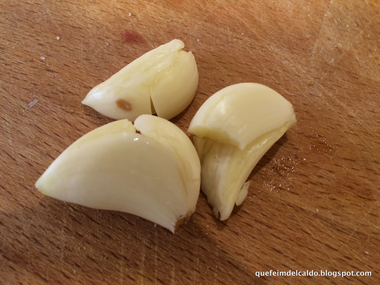Machacamos 3 dientes de ajo y lo incorporamos a la olla.