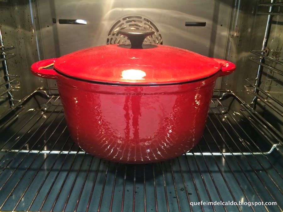 Tapamos la cazuela y la introducimos al horno durante 3 horas a 180º