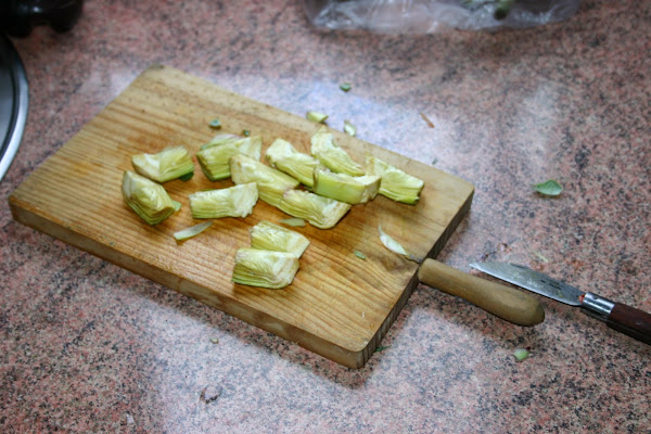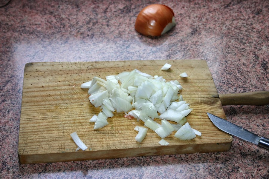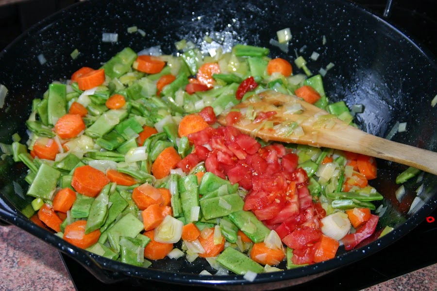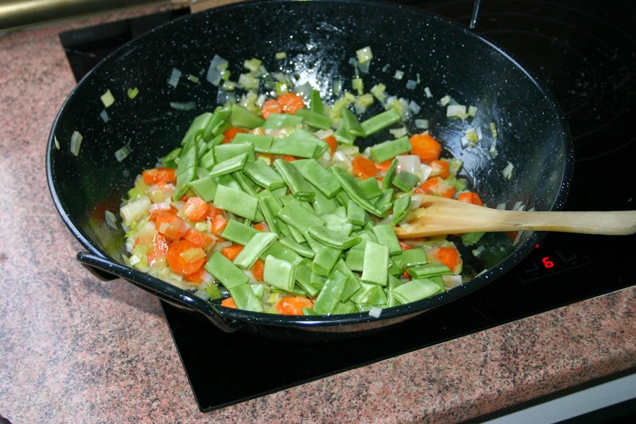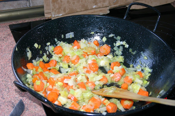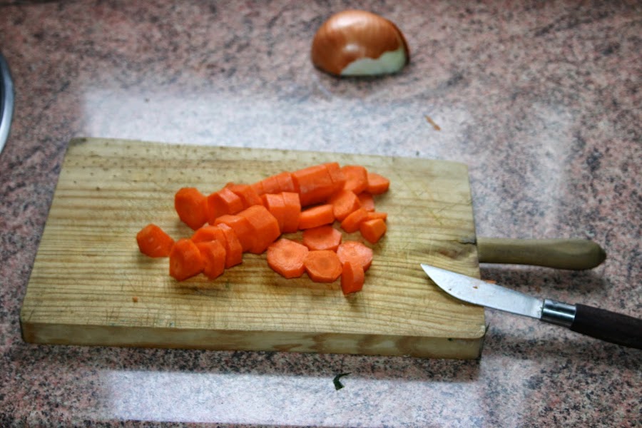 mientras se va sofriendo pelamos las zanahorias en trozos pequeños ya que elñ tiempo de coccion no será mucho y si no quedaran duras