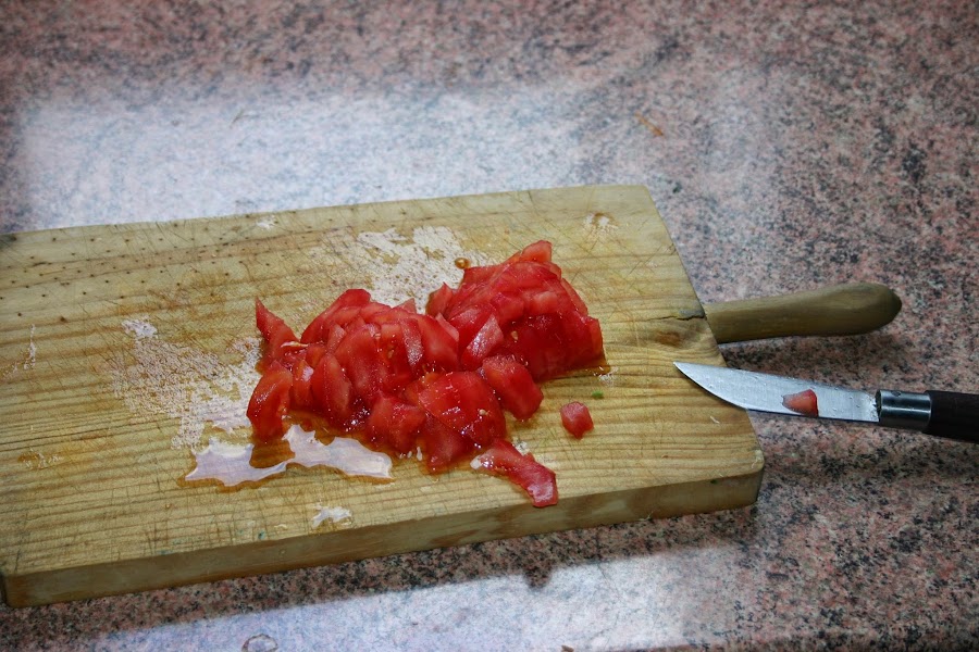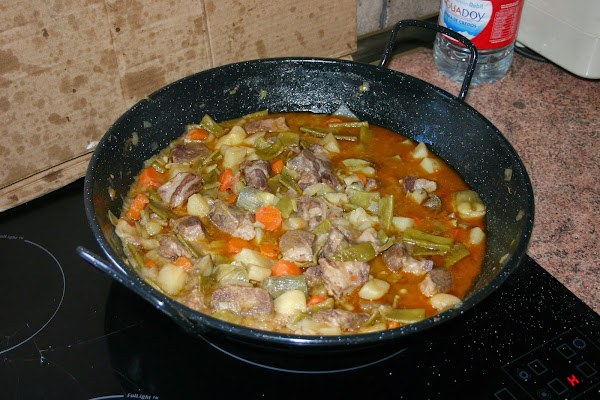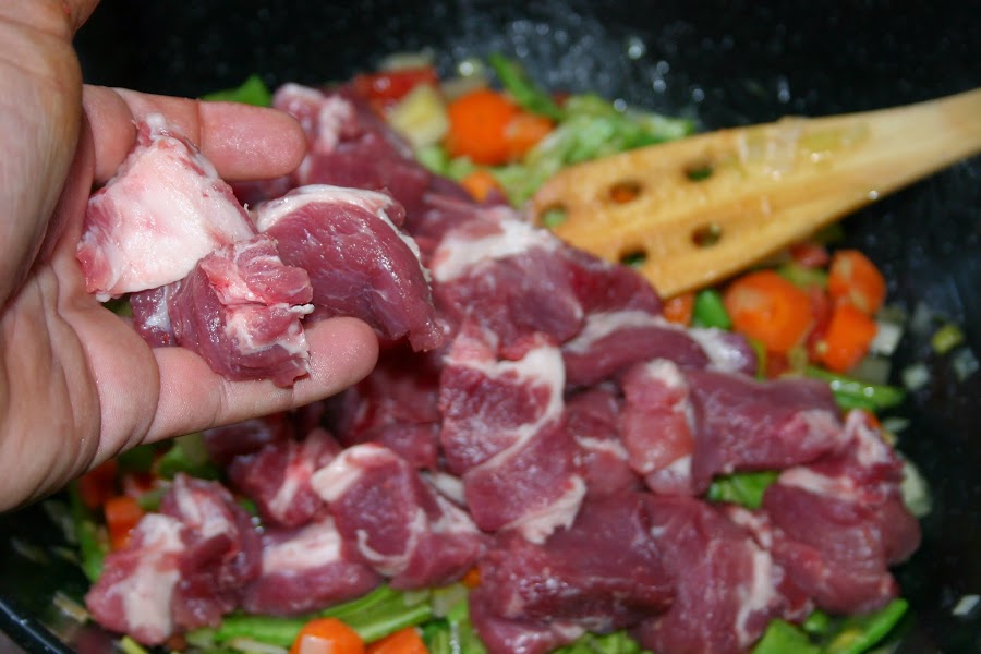 una vez este bien sofrito y reducido un poco el tomate echamos la carne previamente salpimentada