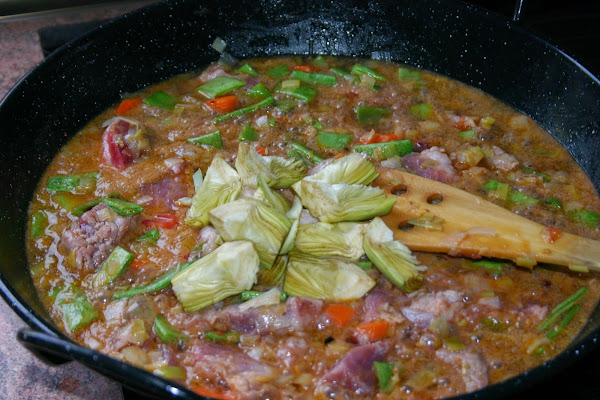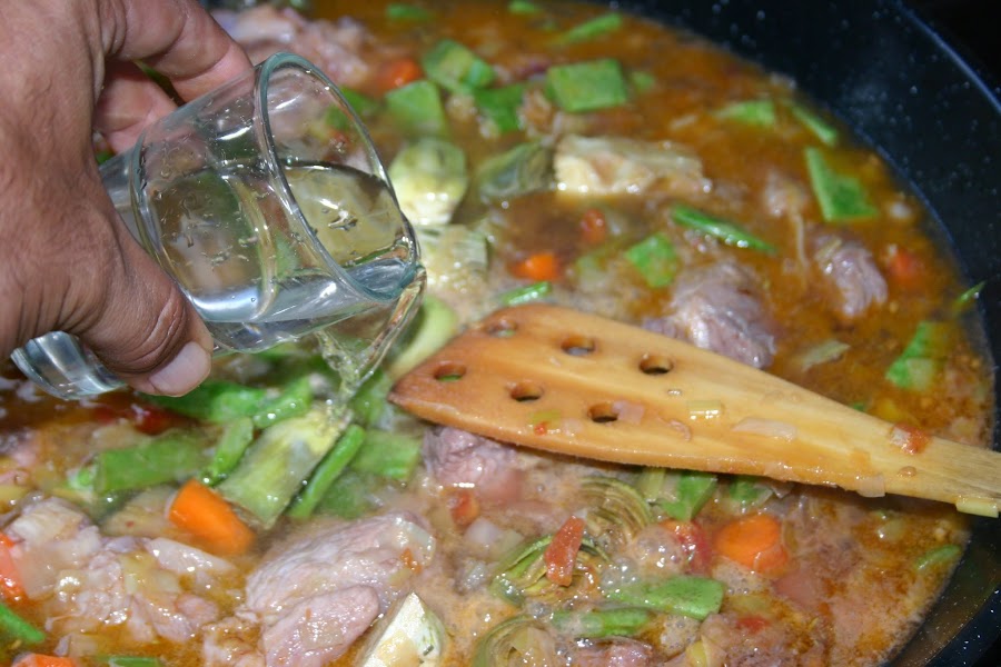 y cuando este todo bien sofrito lo echamos a la cazuela, salamos, echamos azucar y que se fria un poco