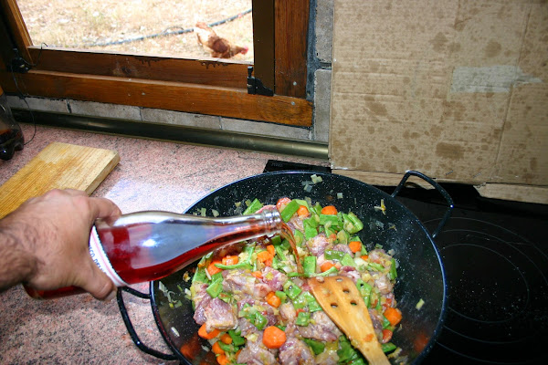 la sofreimos para que coja algo de color y añadimos el lambrusco y que hierva