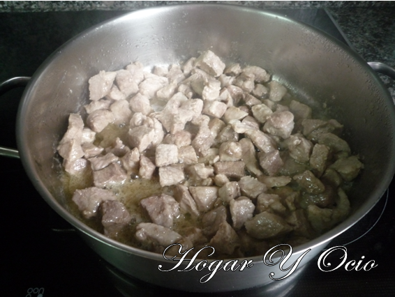 2. Ponemos una cacerola amplia al fuego con un chorreón de aceite. Cuando esté caliente, agregamos la carne y la doramos para que quede bien sellada. Reservamos.