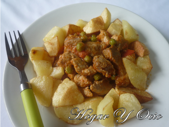 5. Por último, ponemos sal y pimienta al gusto. Cocinamos hasta que la carne esté tierna y servimos con el acompañamiento que más nos guste, en este caso, patatas fritas. Buen provecho!!!