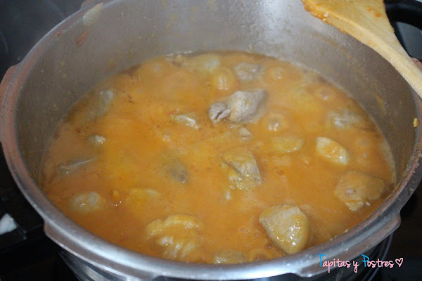 Cerramos la olla y cuando la válvula suba, bajamos el fuego y lo dejamos suave que se cocine unos 6 minutos.