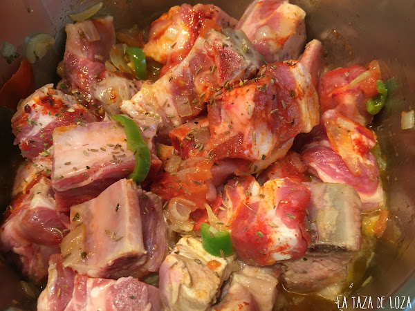 Aquí están las costillas ya mezcladas con el pimentón y el vino