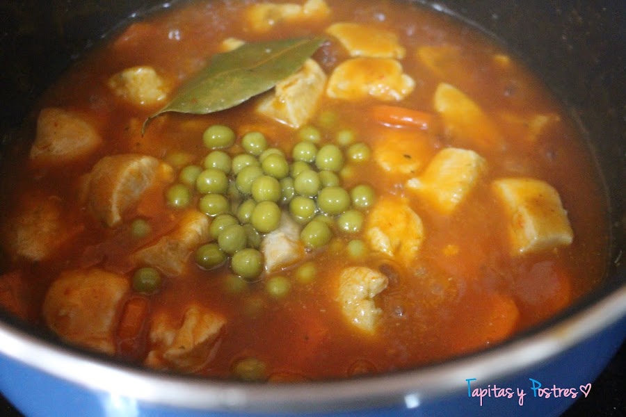 Por último agregamos los guisantes y dejamos cocer un par de minutos más.