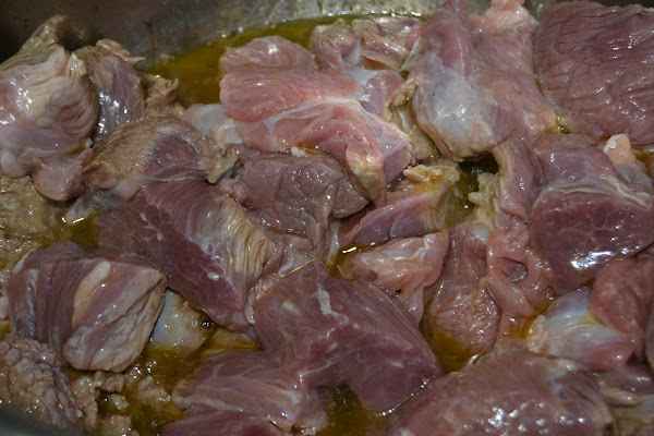 En ese mismo aceite echamos la carne a trozos no demasiado grandes y rehogamos.