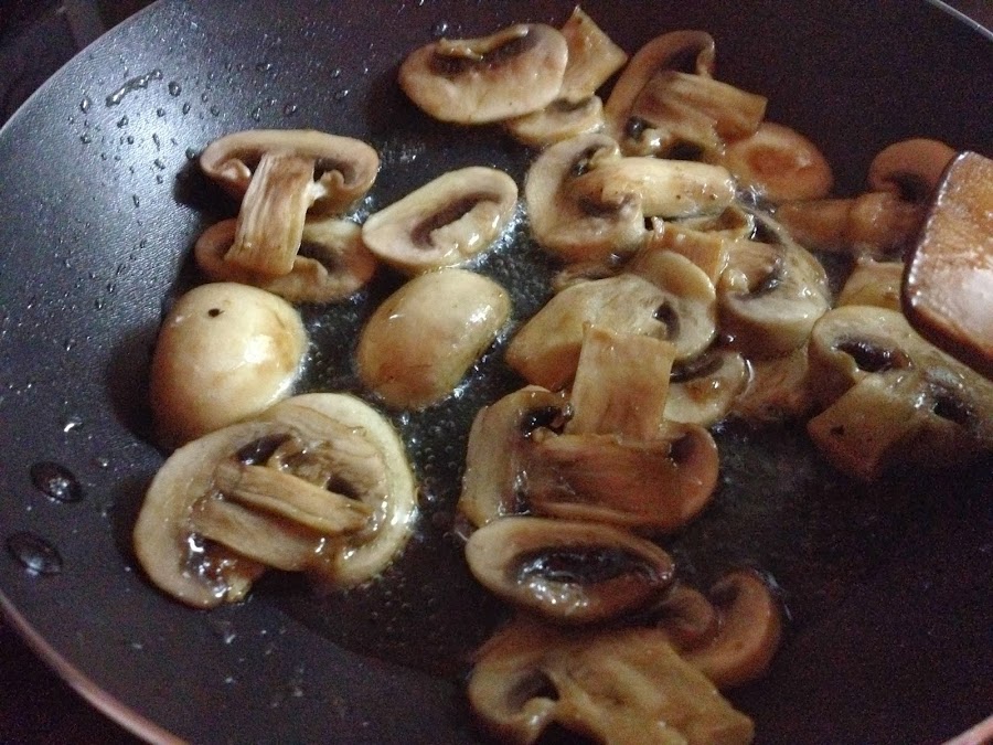 3.- Lavamos y cortamos en laminas los champiñones, los salteamos en una sartén con un poco de aceite de oliva. Añadimos medio zumo de limón y salpimentamos, una vez estén cocinados los escurrimos.