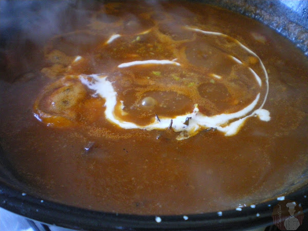Pasados los 10 minutos, añadir la nata (crema de leche) condimentada y remover hasta ligar bien la salsa.