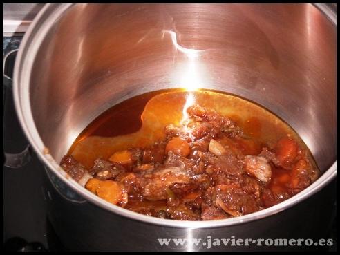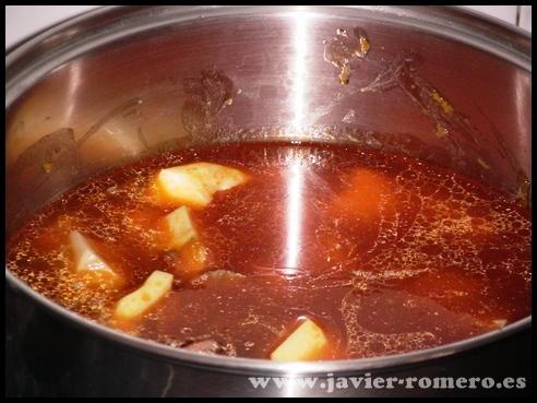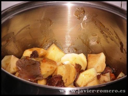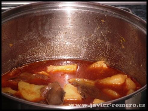Lo normal es que no les falte agua, pero por si acaso utilicemos el sentido común…, si os fijáis os recomiendo añadir agua embotellada, no me gustaría que el agua aportase sabor de cal o cloro a este guiso.