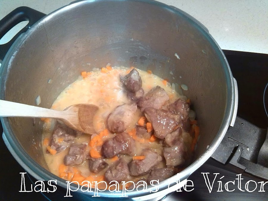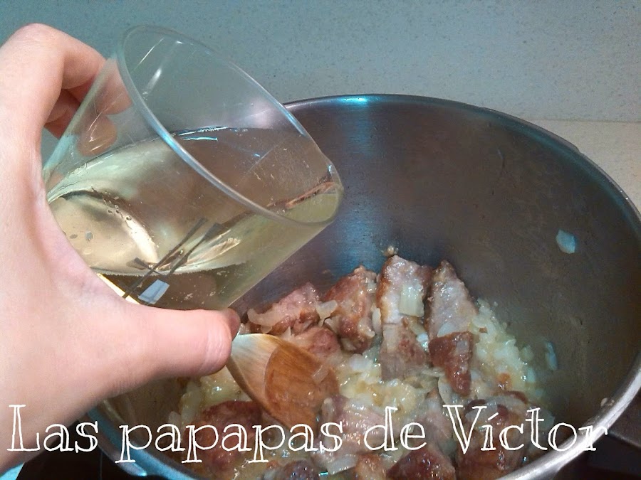 Añadir el vino blanco y dejar evaporar unos 10 min