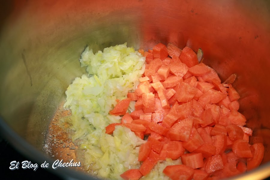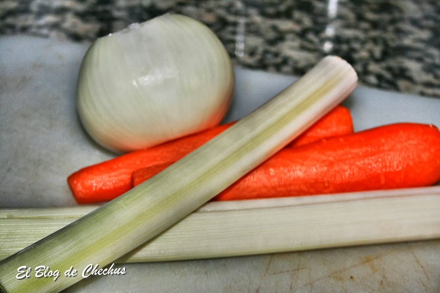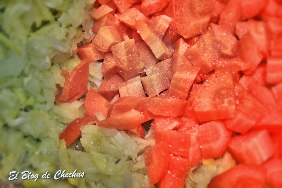 Primero picamos muy pequeño el puerro, la cebolla y el ajo y a trozos la zanahoria.
