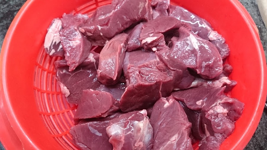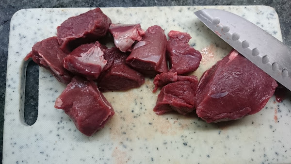 1.- Troceamos la carne en pedazos pequeños.