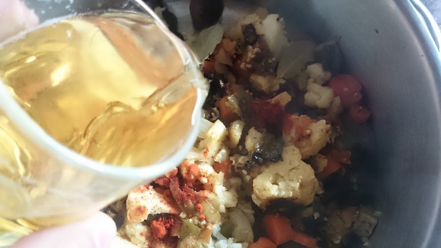 5.- Volvemos a poner un poco de sal y aceite y añadimos agua hasta cubrir.