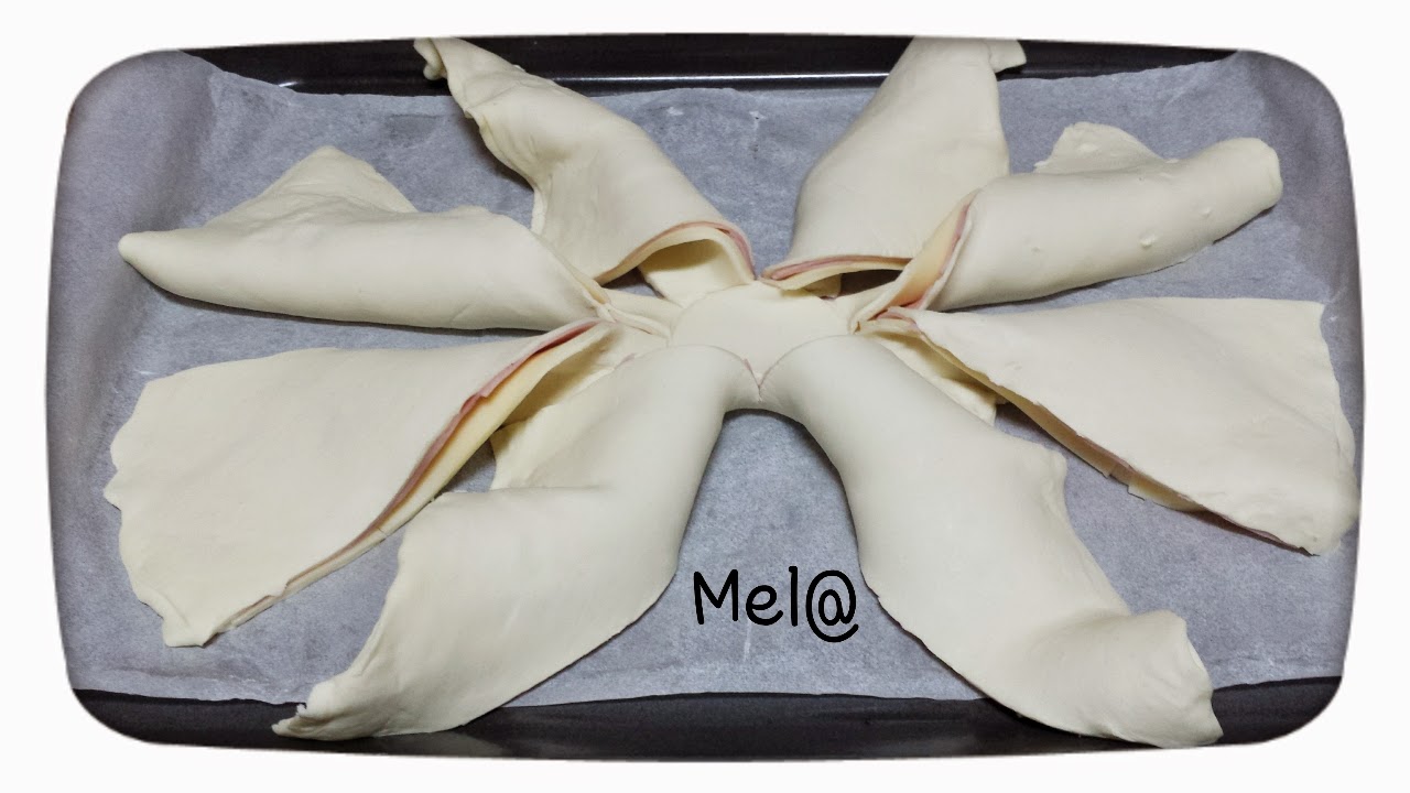 La idea original llevaba paté en la base del hojaldre y luego el jamón pero como en casa no les gusta no lo puse.