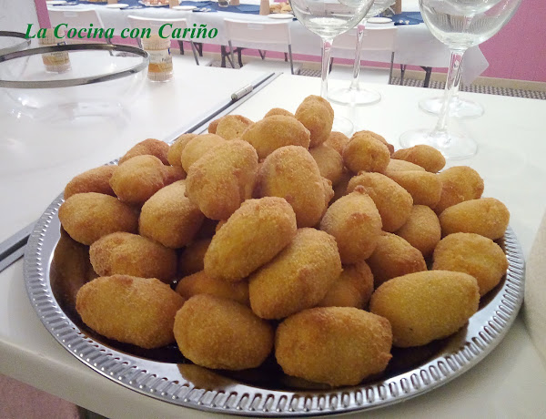 Una boda, familiar, sencilla y con un menú laaargo. Cartuchitos de cazón en adobo, choco frito y buñuelos de gambas con cerveza, Vasito de salmorejo, Canapé de pisto con huevo de codorniz, Brochetas d ...