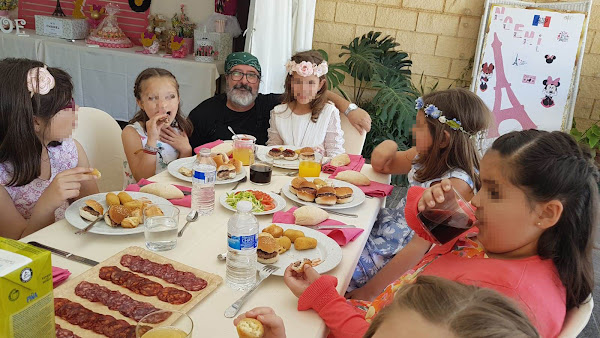 Los niños Croquetas de Jamón Caseras, Miniburguer maceradas con con Miel (deliciosas), Minisaladitos variados y Chacina Ibérica con su Tarta húmeda de Chocolate y Almendras con salsa de chocolate caliente con especias.