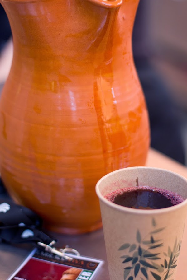Tras recibir las acreditaciones, dimos un paseo por todos los talleres preparados para recrear la época de Augusto. Para apagar la sed, terminamos en un puesto de comida y bebida de la época. Después de tomar una cerveza Rosita fresquita, probamos un Mulsum (que también aparece referenciado como "vino y miel"). En concreto éste llevaba vino, miel, agua de rosas y pimienta negra.