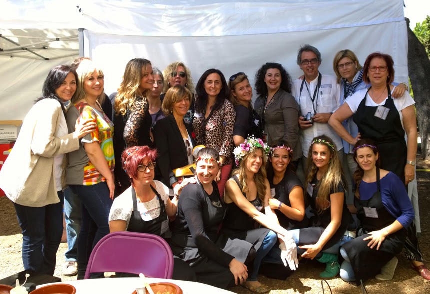 De izquierda a derecha y de arriba a abajo, Luisa (Baco y Boca); Eva (Eva Ballarín); Angels (Angels Cuina); Antonio (A la carte menús); Rosa Mari (A la carte menús); Esther (Revelando mis fuentes); Luis (Lanzarote 3); María (Cocina Pret a Porter); Gema (Divinos Sabores); Javier (Amigastronómicas); Rose Michelle (A la bonne Franquette); yo misma y Gemma (Food and Cakes by GB). Y, como no, la persona más especial: Silvia (Amigastronómicas).
