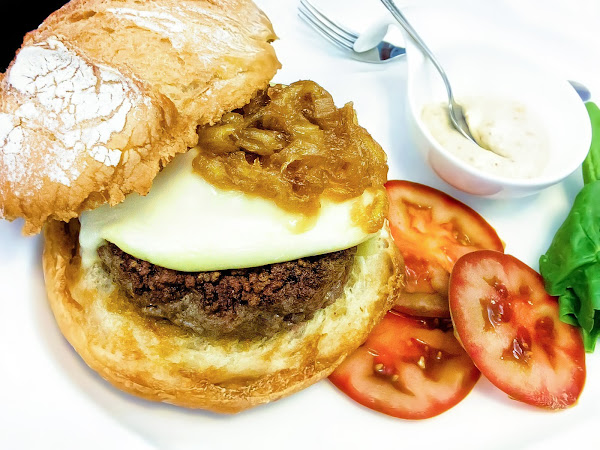 Hamburguesa 100% vacuno gallego, con queso de Arzúa Ulloa, tomate ahumado y pan del país (8€)